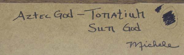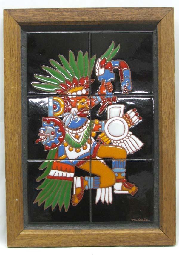 Framed Handpainted Aztec God Tonatiuh Tile Art by Michele, measures approx. 17.5 x 11.75''. Buyers Pay Actual Shipping and Handling Charges(see terms and conditions for more information)