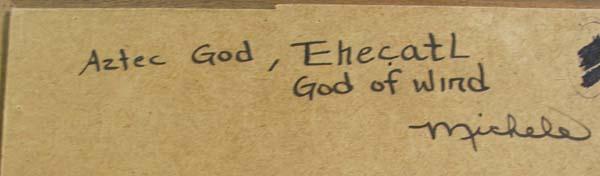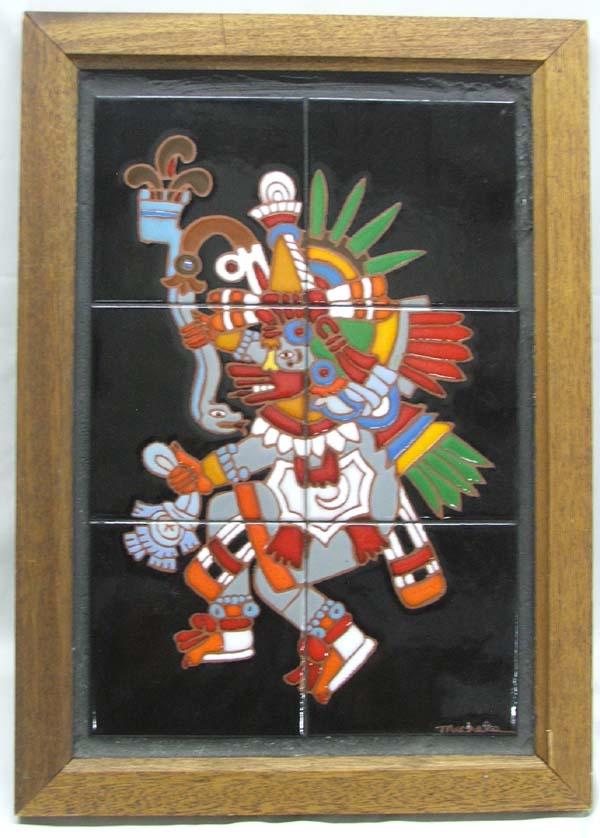Framed Handpainted Mayan God Ehecatl Tile Art by Michele, measures approx. 17.5 x 11.75''. Buyers Pay Actual Shipping and Handling Charges(see terms and conditions for more information)