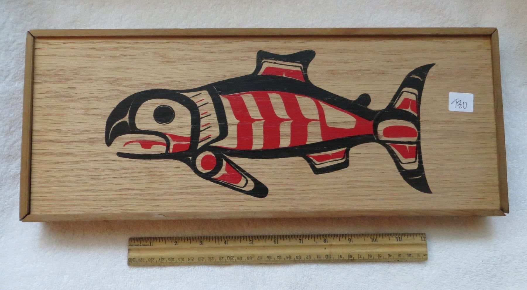 Handpainted Northwest Coast cedar box 18 1/2 x 17 1/2