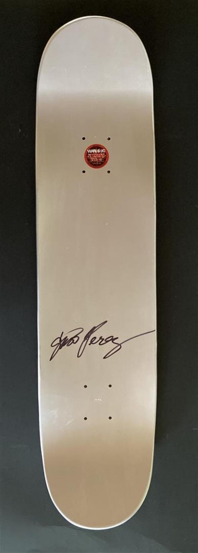 Power of Women by Gino Perez. "Power of Women" is a wood Sugar Skate Co deck, with hand painted original artwork by Gino Perez, and hand signed. Measures approximately 31.5" x 7.75". Year: 2019. Never mounted or displayed.