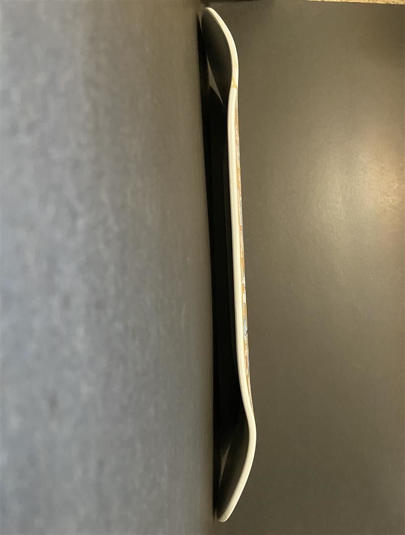 Street Session by Gino Perez. "Street Session" is a wood Sugar Skate Co deck, with hand painted original artwork by Gino Perez, and hand signed. Measures approximately 32" x 8.5". Year: 2019. Never mounted or displayed.