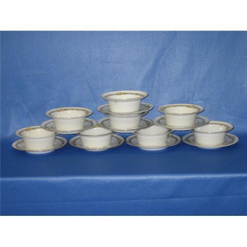 This is aset of eight handpainted Limoge porcelain small bowl& underplate in very good condition (just some normal gold gilt wear and one of the bowls has small chip) from 1931 France. Plate's W:5" Bowl's H:1.1/2" - W:4.1/4".