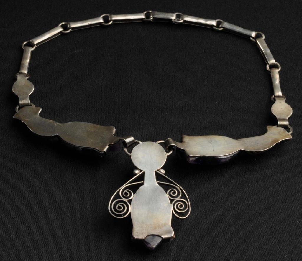 Description Unmarked and in the style of Spratling. One small dent at bottom of center drop. Condition (Excellent). Size 14" L.
