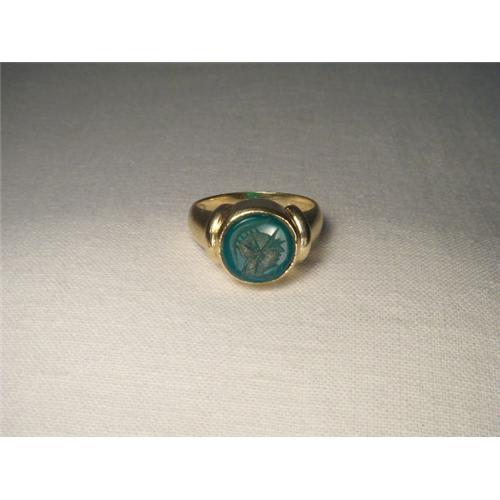 <tr><td>Title:Handsome Estate 14K YG Jade Intaglio Mens Ring</td></tr>