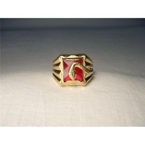 <tr><td><font size="2" face="Arial, Helvetica, sans-serif"><strong><font color="#000033">Title:</font></strong>Handsome Estate 18K Gold Ruby Snake Mens Ring</font></td></tr>