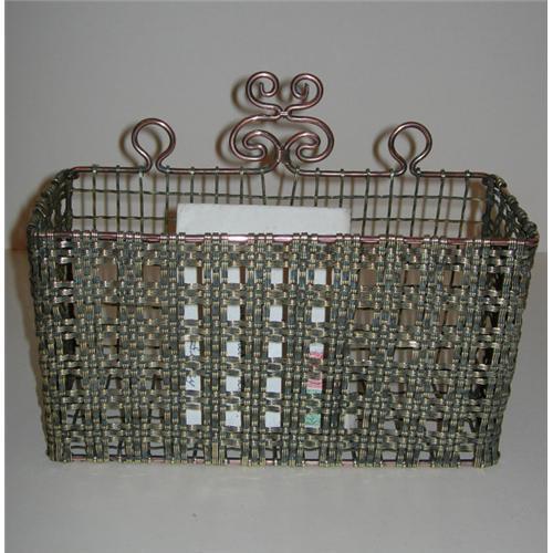 The main "frame" of this piece (the thicker wire) is made from copper and the front and side mesh is created from three woven wire straps, almost to create a tartan or plaid effect, most unusual, I haven't had one quite like this before. The back woven mesh is a little simpler in design.