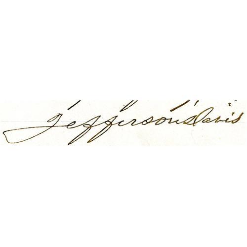 <B>Handwritten Note Signed By Jefferson Davis.</B></I> This handwritten note written in Memphis, Tennessee by Jefferson Davis informs an unnamed person that: "<I>I cannot tell you how or where to obtain the autograph of Genl. Lee. Respectfully, Jefferson Davis</B></I>" <BR><BR>Measuring 4.5" x 7.5", this is a curious handwritten note written by the president of the Confederacy and comes with a gray hardbound slipcover with gold lettering.<BR><BR><b>Shipping:</b> Small Collectibles (<a target="_blank" href="http://www.heritageauctions.com/common/shipping.php">view shipping information</a>)