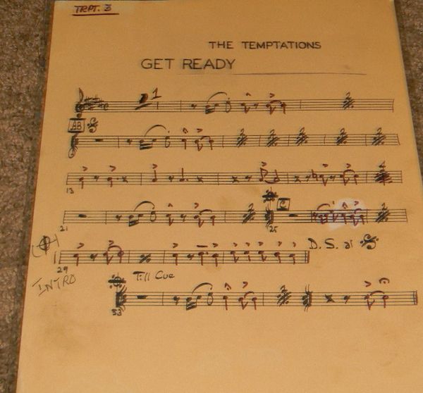 Original handwritten music for the classic song Get Ready with provenance showing that this was indeed used in the Motown Studios for years. This item comes with a certificate of authenticity good for the life of the piece.