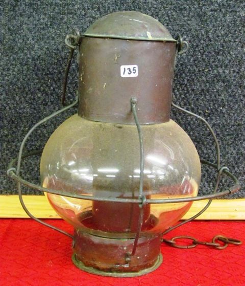 19th Century Copper and Bubble Glass Lantern -Candle Tin Center 13" T