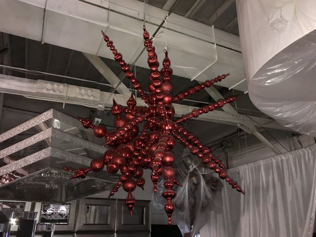 Mayor Eric Garcetti Christmas Party red hanging decoration.