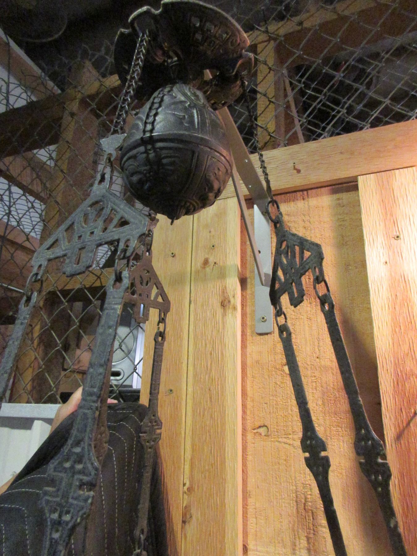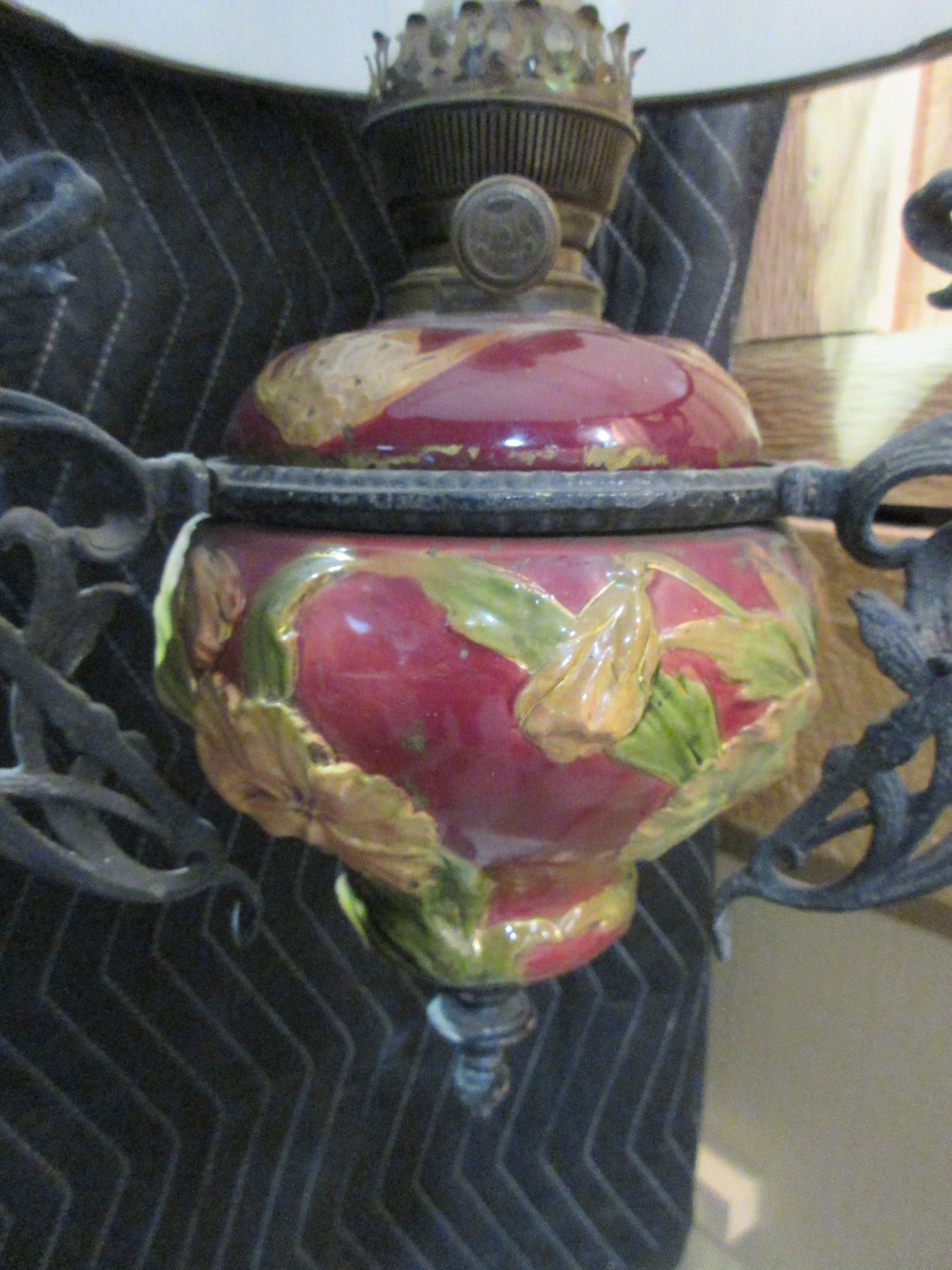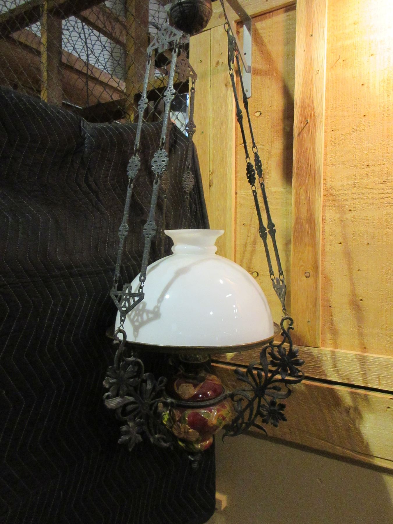 Hanging Hand Painted Aladdin Oil Lamp- Shade 15"W- Total Length 50"- Excellent Condition