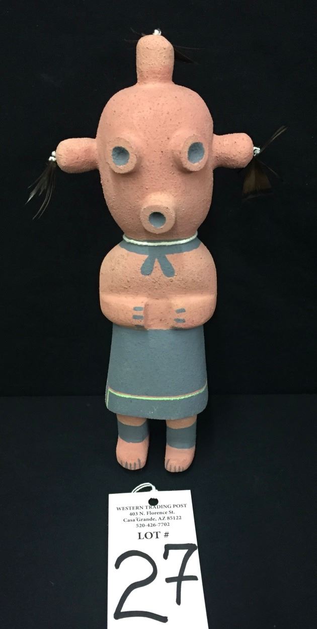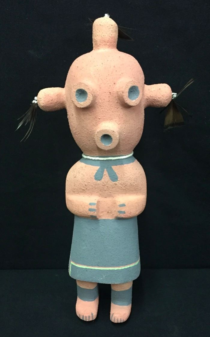 Maker: Chester Polyestewa, Hopi. Approx. Age: Fairly modern. Size: 10” tall. Condition: Good. Additional Info: A hanging, Mudhead, Hopi Kachina by a well-known artist. Please look closely at the pictures - they are an important part of our description. Shipping: There will be a $7 handling / packaging fee for shipping this lot. The actual cost of postage will be added on top of that.