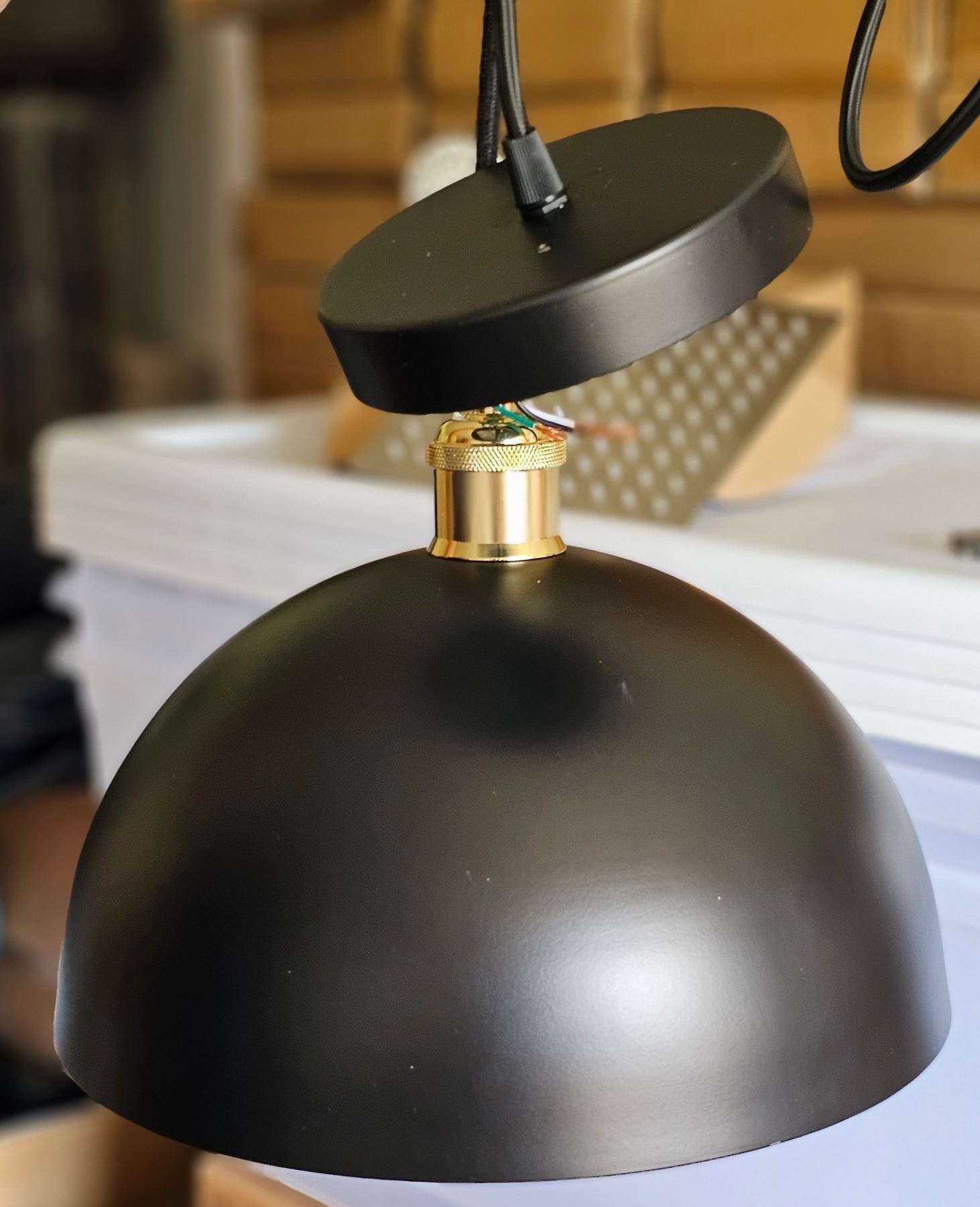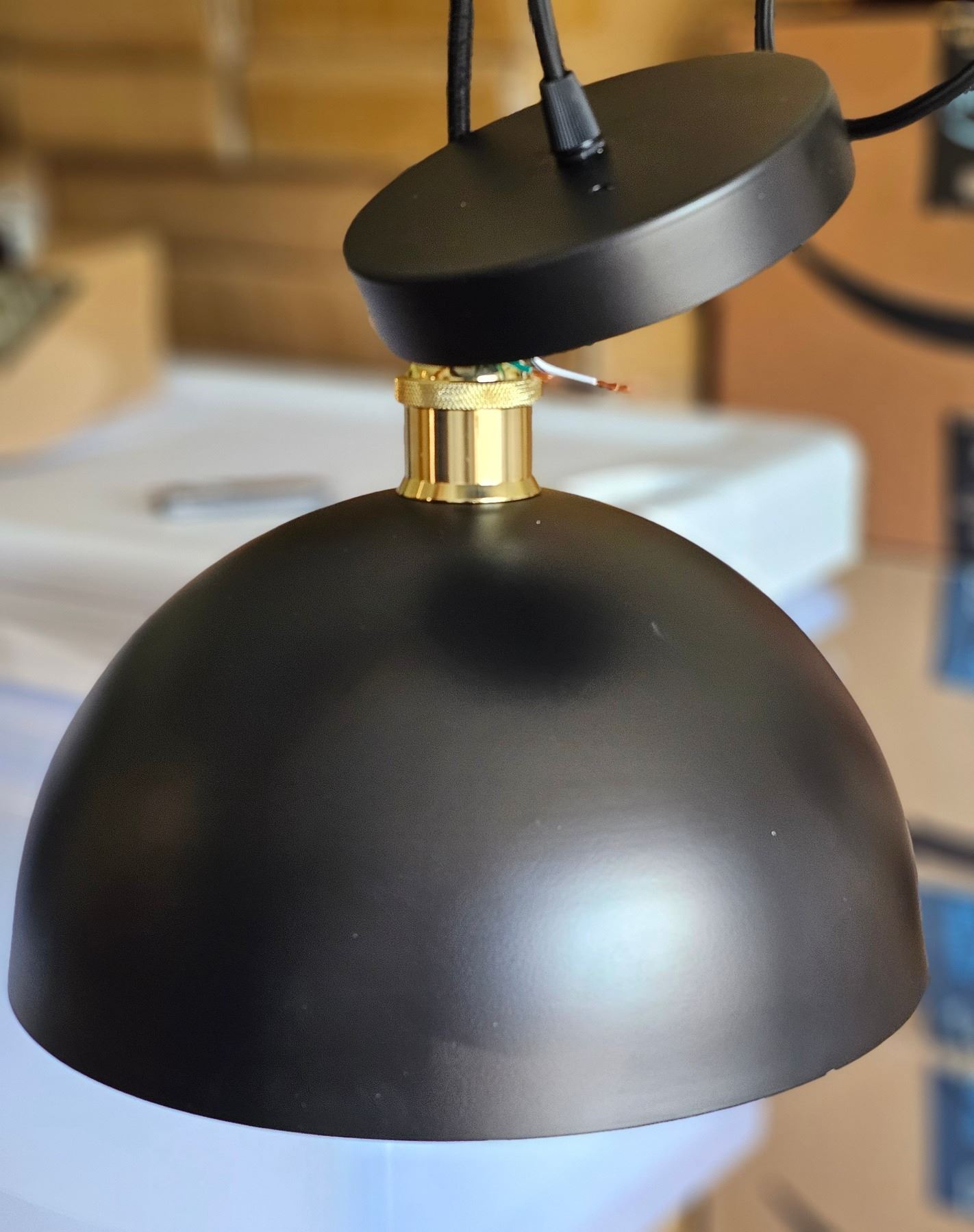 Flynix Hardwired Pendent Light, Black And Gold Shade, New Condition