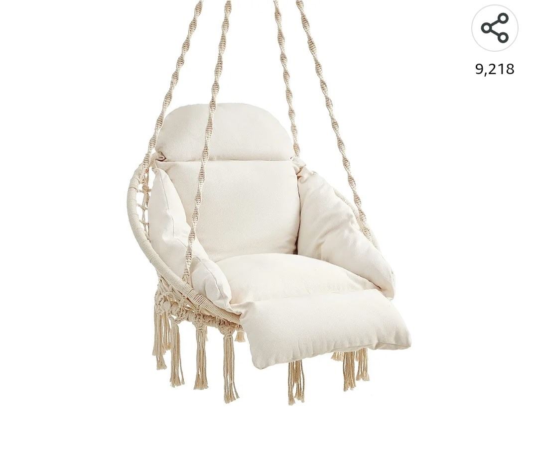 Songmics Hanging Chair, Large, Thick Cushion Included, Holds Up To 264lb, For Balcony, Living Room, White/Grey Open Box, New Condition