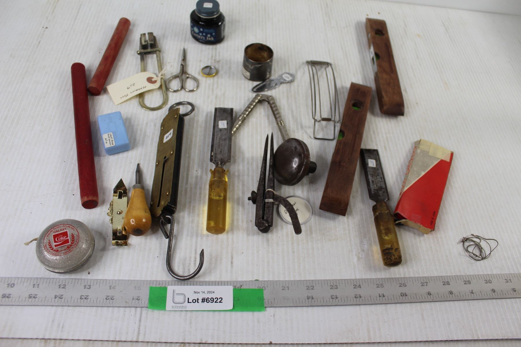 Hanging Weight Scale, Scissors, Chisel, Nutcracker, Level