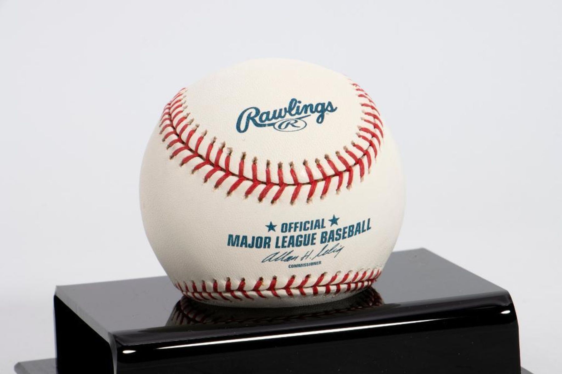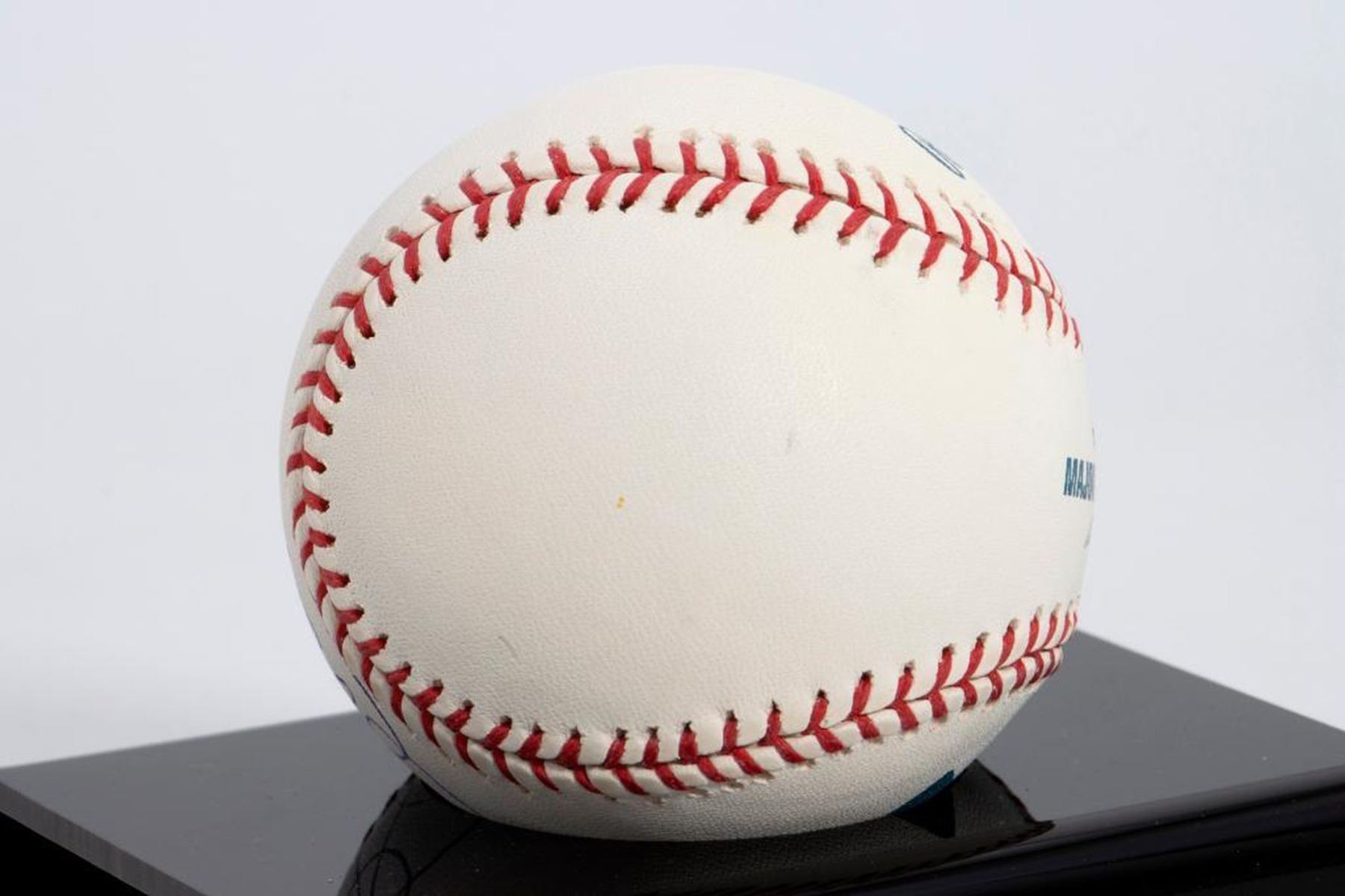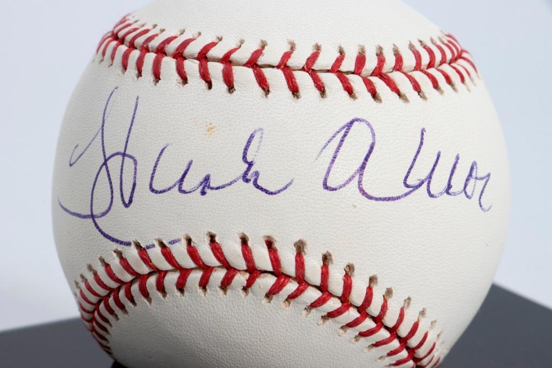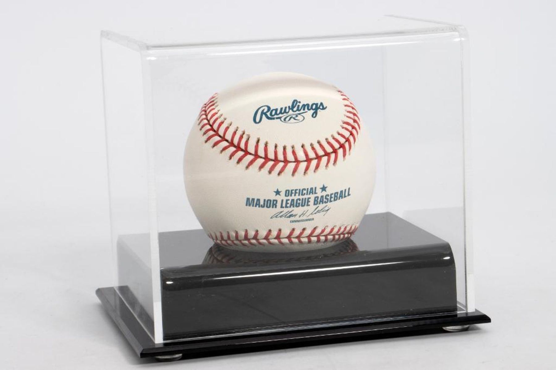 Hank Aaron Autographed Official Baseball with display case. H: 4.6 inches W: 5.2 inches Depth: 4.3 inches