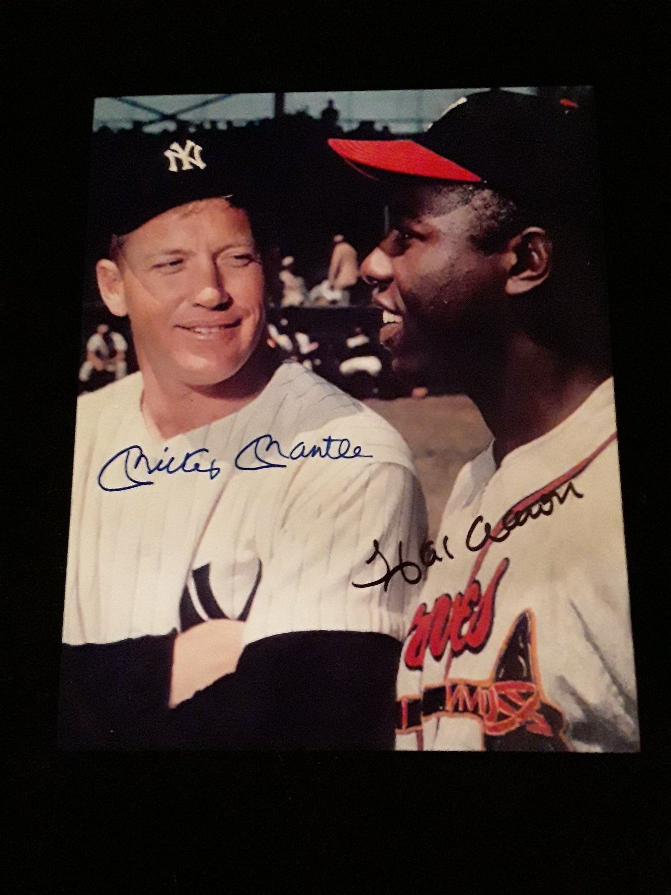Hank Aaron Mickey Mantle Autograph 8x10 W/COA