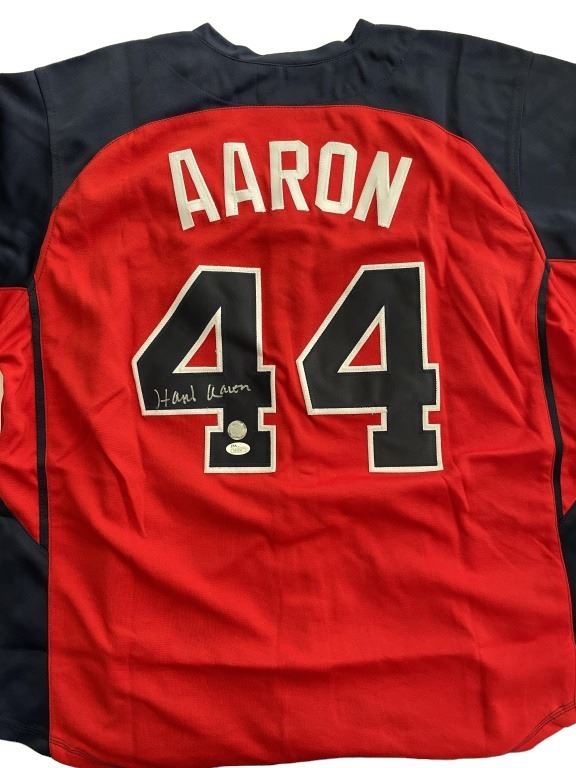 Hank Aaron signed #44 baseball jersey. size XL. JSA Authenticated and GFA authenticated. FL94