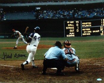 Hank Aaron, a 24 time MLB All-Star, is a home run icon. He started his career in 1954 with the Milwaukee Braves, playing his last 2 years with the Milwaukee Brewers. His amazing knack for hitting home runs and all around ability made him a consensus legend in Cooperstown, NY. Hank Aaron has hand signed this 16x20 color photograph of him in action, swinging the bat during a Braves-Astros game. This product comes complete with a Steiner Sports Certificate of Authenticity.