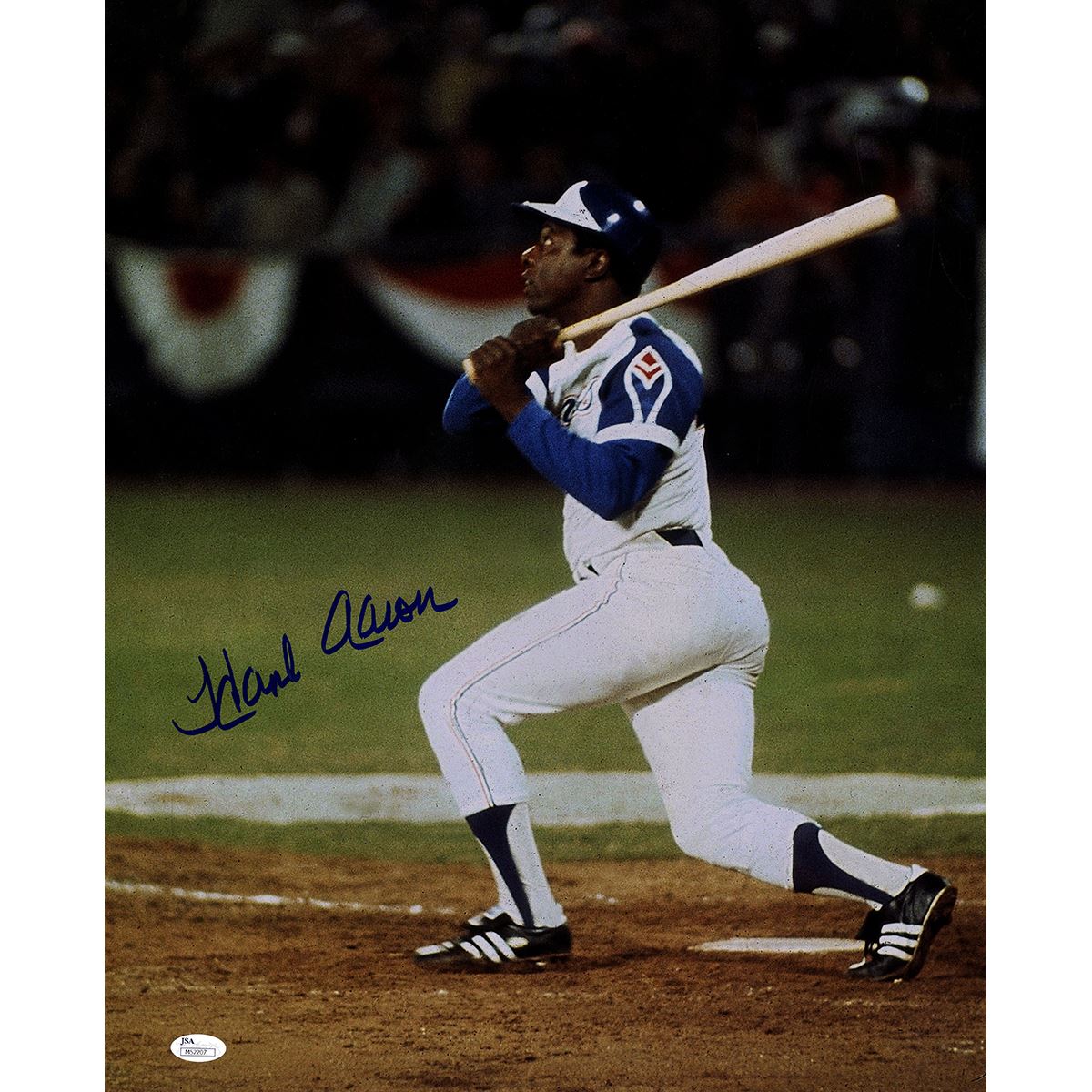 Hank Aaron Signed Atlanta Braves Close Up Action 16x20 Photo ( JSA)