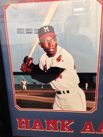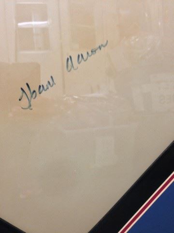 One of the most famous and award winning baseball players of all time "Hank Aaron" from the years 1954-1976 he held the MLB record for career home runs, he was inducted into the Baseball Hall of Fame in 1982, this is an autographed home plate in a plexiglass frame with his photo next to it.(31x43)