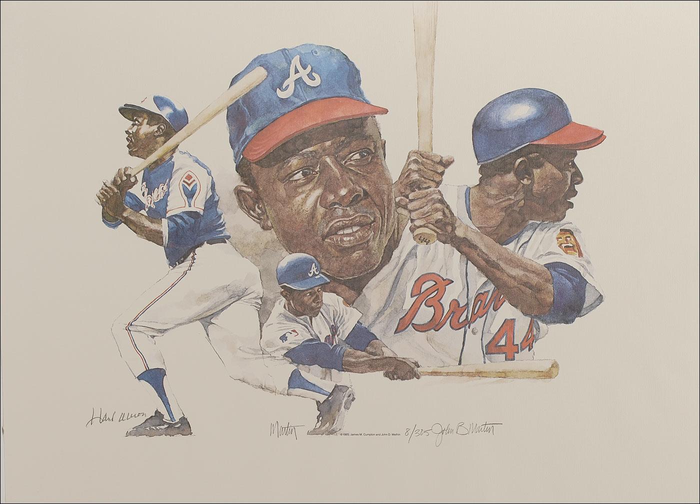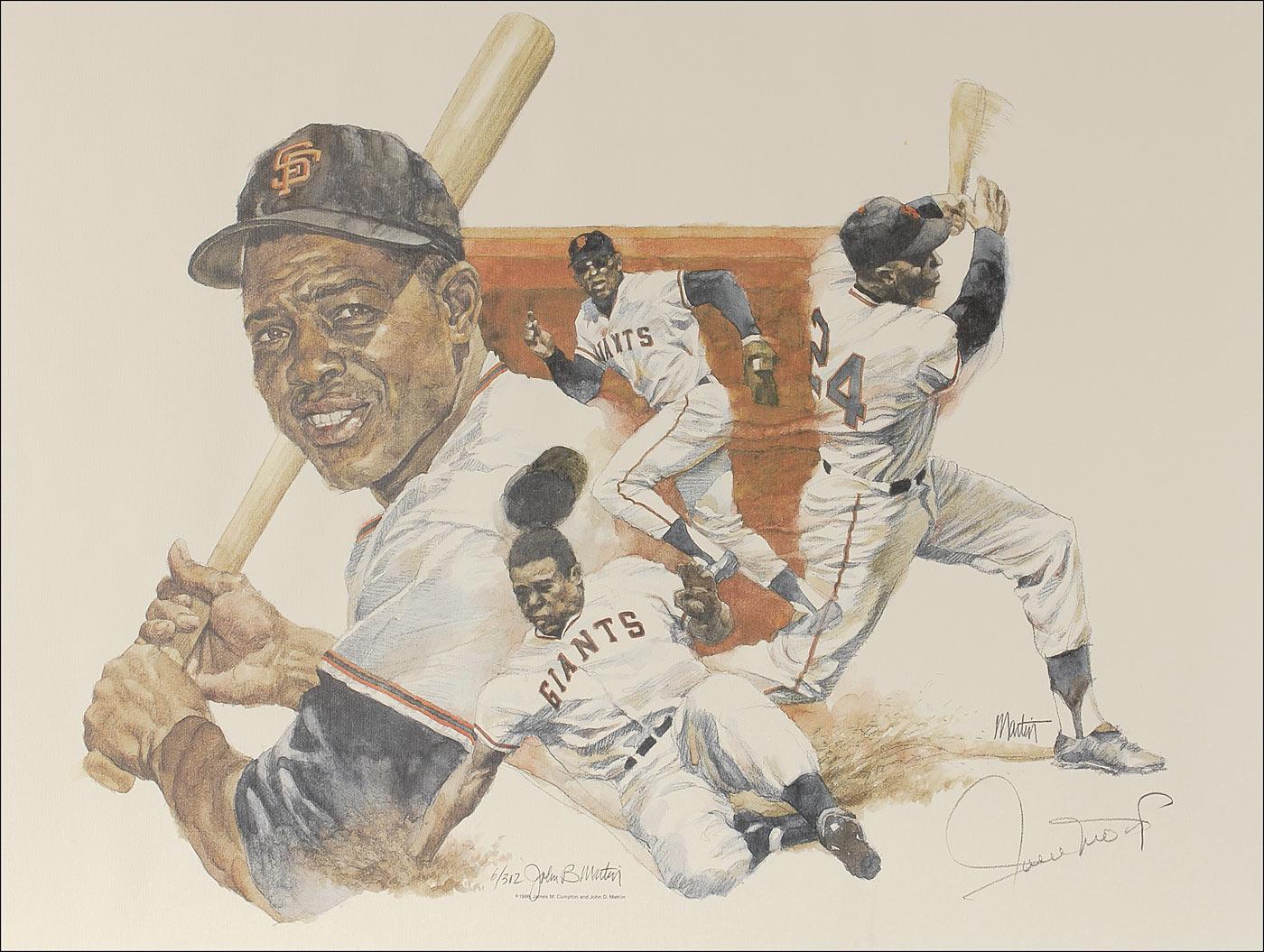 Two color limited edition 24 x 17.5 composite lithographs, one signed in pencil by Hank Aaron, the other signed in pencil by Willie Mays. Both are also signed in pencil by the artist, John B. Martin. In fine condition.