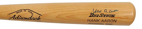 Official Adirondack Hank Aaron–model baseball bat signed in blue felt tip on the barrel. In fine condition.