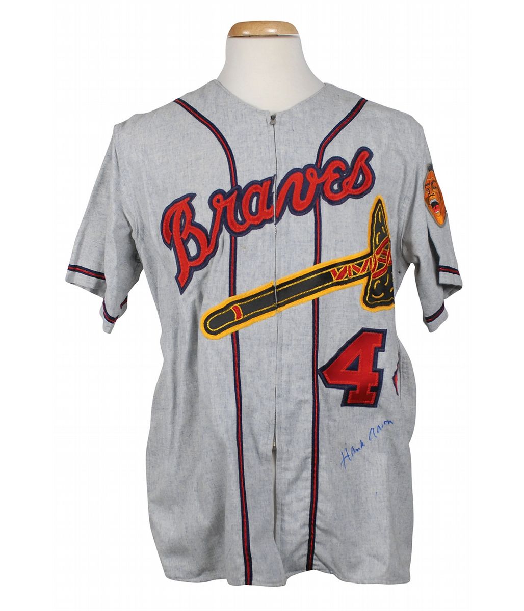 Official Maple replica Atlanta Braves baseball jersey, with sewn on letters and numbers, signed in blue felt tip on the front. In fine condition.