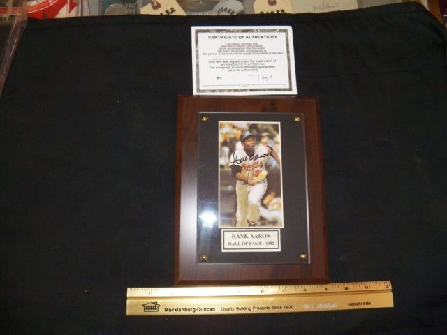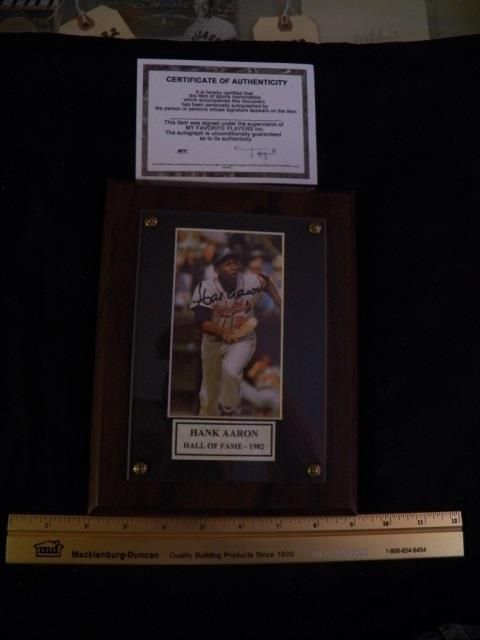 Hand Signed Hall of Fame 1982 Hammering Hank Arron Plaque