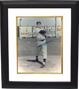In a 14-season career, Bauer had a .277 batting average with 164 home runs and 703 RBI in 1544 games. He won the World Series with the Yankees seven times and holds the World Series record for the longest hitting streak, at 17 games. Perhaps his most notable performance came in the sixth and final game of the 1951 World Series, where he hit a three-run triple, and saved the game with a diving catch of a Sal Yvars liner for the last out. Hank Bauer has hand autographed this New York Yankees Color 8x10 Photo. Certificate of Authenticity from Athlon Sports. Hank Bauer passed away on February 9, 2007. Custom White Mat and Premium Black Frame as shown.