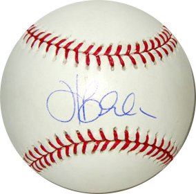 In 2003, Blalock had a breakthrough year, hitting 29 home runs and 90 RBIs with a .300 batting average. A combination of being able to hit for power and for average drew early comparisons to George Brett and helped him to get voted to the All-Star Game in his first full season as a Ranger, where he hit the game winning home run off Los Angeles Dodgers closer Eric Gagné. Hank Blalock has hand autographed this Official Major League Baseball. Certificate of Authenticity from All Star Lineup.