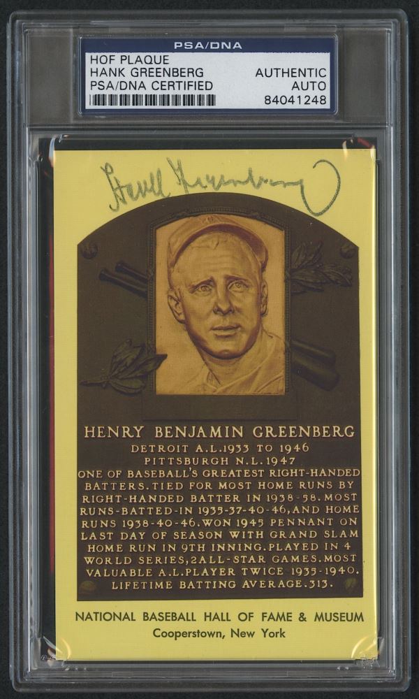 Postcard measures approximately 3.5" x 5.5" in size and has been hand-signed by Hank Greenberg (D 1986, HOF).
