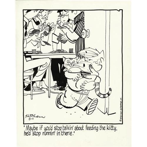 <B>Hank Ketcham - Dennis the Menace Daily Comic Strip Original Art, dated 8-11-79 (Field Newspaper Syndicate, 1979).</B></I> The rib-tickling remarks of that six-year-old terror, Dennis, are captured by Hank Ketcham, with his lively line and laugh-filled gags. The image area of this daily measures 6.5" x 8", and the condition is Excellent. <BR><BR><b>Shipping:</b> Flat Material, Small (<a target="_blank" href="http://www.heritageauctions.com/common/shipping.php">view shipping information</a>)