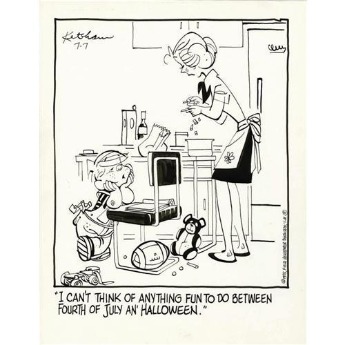 <B>Hank Ketcham - Dennis the Menace Daily Comic Strip Original Art, dated 7-7-75 (Field Newspaper Syndicate, 1975).</B></I> Looks like Dennis is having a rare bit of "down time" -- it's sure to be temporary. The image area of this strip measures 6.5" x 8", and its condition is Excellent. <BR><BR><b>Shipping:</b> Flat Material, Small (<a target="_blank" href="http://www.heritageauctions.com/common/shipping.php">view shipping information</a>)