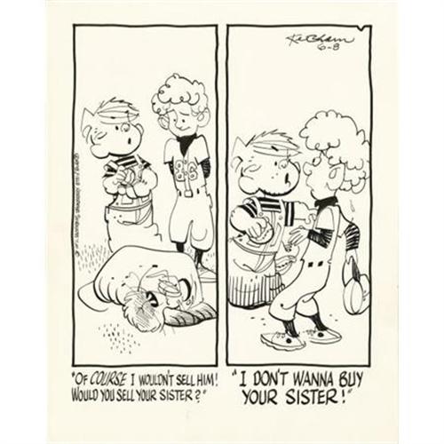 <B>Hank Ketcham - Dennis the Menace Daily Comic Strip Original Art, dated 6-8-78 (Field Newspaper Syndicate, 1978).</B></I> Dennis and Ruff star in this heartwarming daily. The image area of this strip measures 6.5" x 8", and its condition is Excellent. <BR><BR><b>Shipping:</b> Flat Material, Small (<a target="_blank" href="http://www.heritageauctions.com/common/shipping.php">view shipping information</a>)