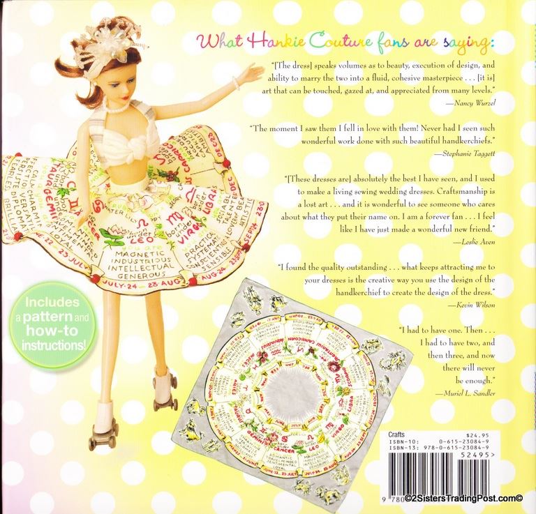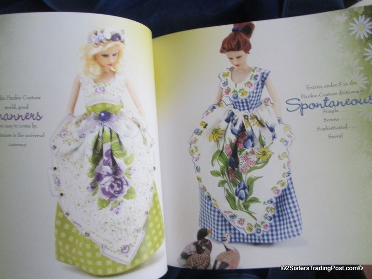 Hankie Couture handcrafted fashions from vintage handkerchiefs by Marsha Greenberg. The book includes a pattern and how-to instructions to make standard 11"-11.5" doll clothes and accessories. This is a hardcover book in like new condition with dust cover. NOTE: there is minor damage on top corners other then these two nicks this book is like brand new see images for details. MSRP $24.95