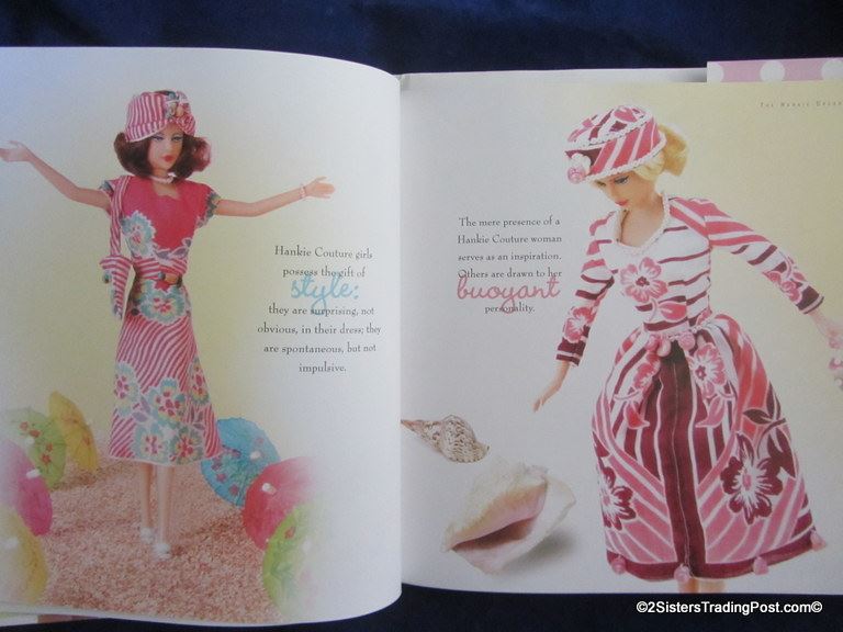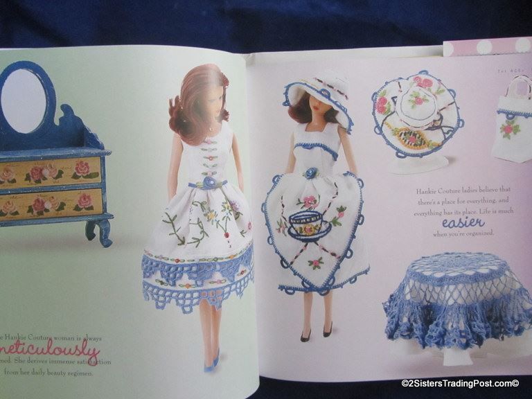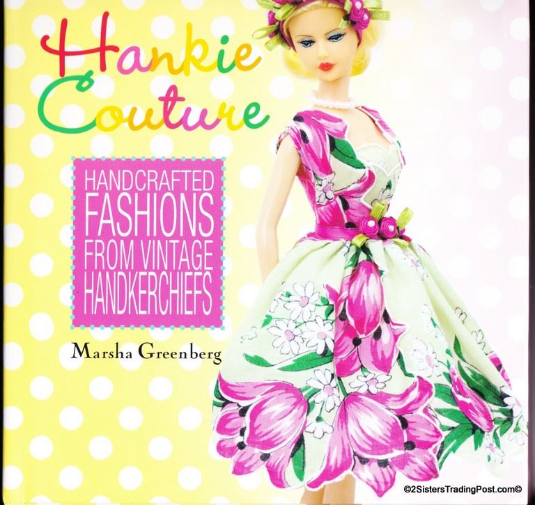 Hankie Couture handcrafted fashions from vintage handkerchiefs by Marsha Greenberg. The book includes a pattern and how-to instructions to make standard 11"-11.5" doll clothes and accessories. This is a hardcover book in like new condition with dust cover. NOTE: there is minor damage on top corners other then these two nicks this book is like brand new see images for details. MSRP $24.95