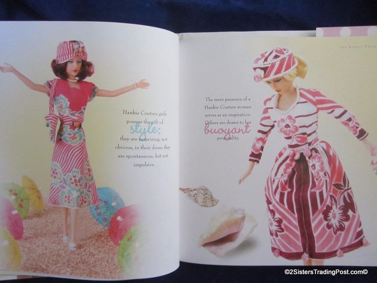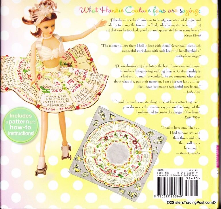 Hankie Couture handcrafted fashions from vintage handkerchiefs by Marsha Greenberg. The book includes a pattern and how-to instructions to make standard 11"-11.5" doll clothes and accessories. This is a hardcover book in like new condition with dust cover. NOTE: there is minor damage on top corners other then these two nicks this book is like brand new see images for details. MSRP $24.95