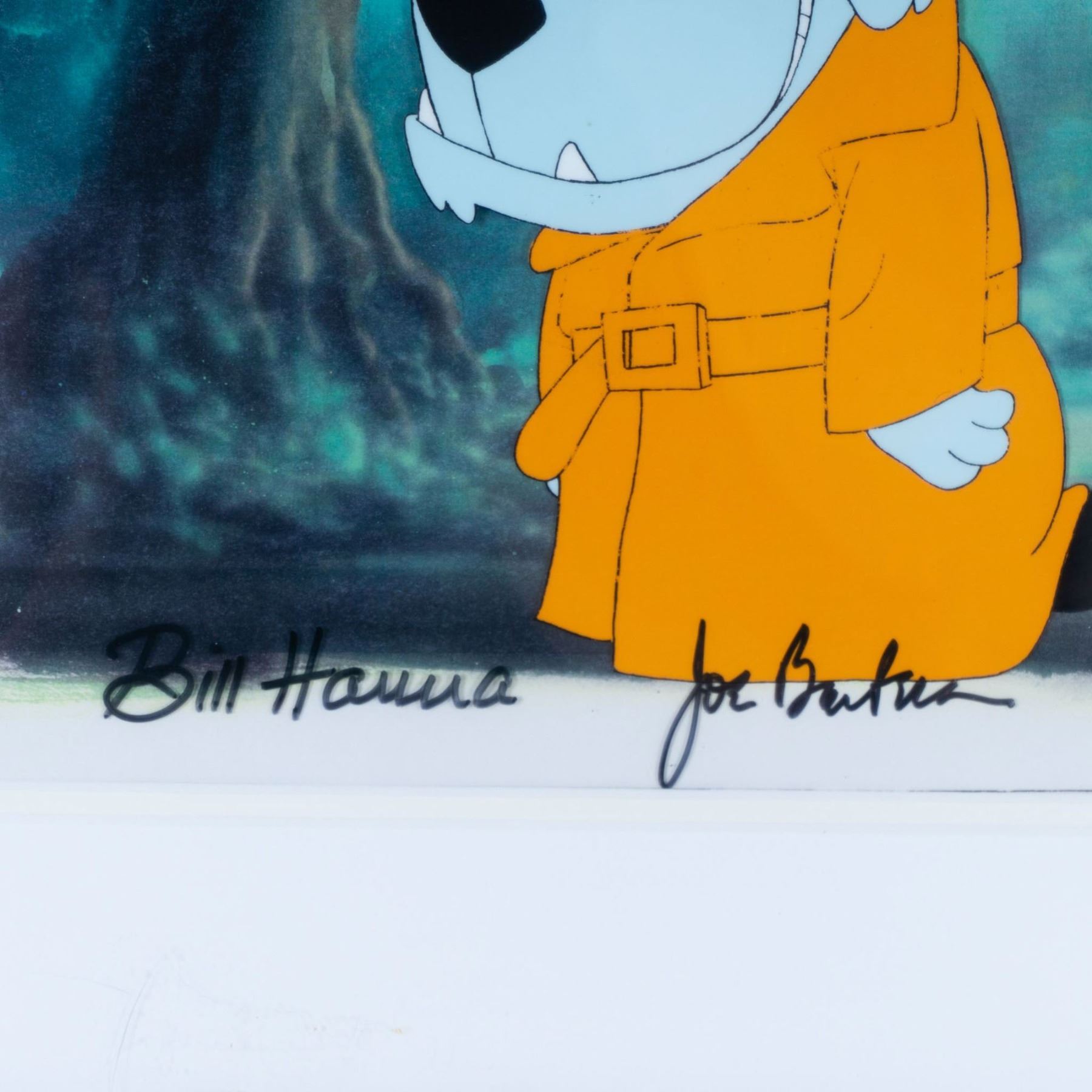 Limited edition. Full color serigraph cel of Hanna Barbera Studio beloved character Mumbly. Signed on lower left by Bill Hanna and Joe Barbera. Hanna Barbera Studio Original Hand Painted Production Cel Logo on lower left. Housed in a gold frame with white mat. Certificate of Authenticity included. Sight size: 12''L x 9''H. Frame size: 21.5''L x 1.25''W x 18.75''H.