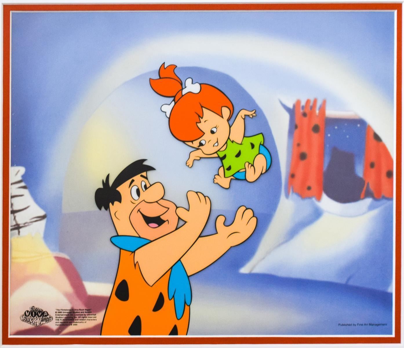 Artist: Hanna-Barbera. Medium: Sericel. Title: Fred Tossing Pebbles. Size (Unframed): 10" x 12". Size (Framed): 17" x 19". Certificate of Authenticity: Is included. Additional: This truly wonderful collector's item from America's animation pop culture will bring cheer to fans of both past and present! "Fred Tossing Pebbles" is a limited edition sericel with a full color background, officially licensed by Universal Studios Licensing and Hanna-Barbera!. Reference# 11536.