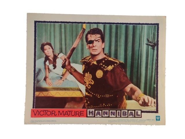 Hannibal (Warner Bros., 1959) lobby card. War, Adventure. Starring Victor Mature, Gabriele Ferzetti, Rita Gam. Directed by Carlo Ludovico Bragaglia & Edgar G. Ulmer. Creasing, light edge wear. Very Fine. (11"x14").