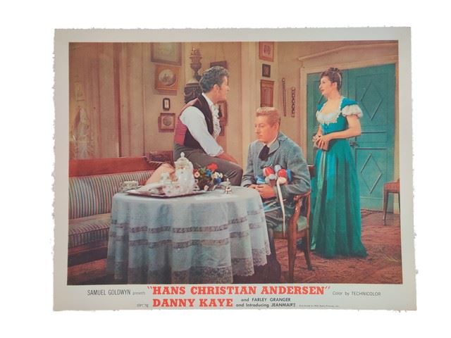 Hans Christian Andersen (Samuel Goldwyn Company, 1952) lobby card. Musical, Comedy. Starring Danny Kaye, Farley Granger, Zizi Jeanmaire, Joseph Walsh, Philip Tonge, Erik Bruhn, Roland Petit, John Brown, John Qualen, Jeanne Lafayette. Directed by Charles Vidor. Light edge wear, pin-holes. Excellent. (11"x14").