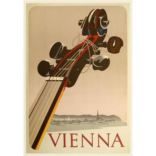 33h x 23.5w inches, original color lithograph, mounted on linen, in very good condition, small cratches upper left, marked lower right "printed in Austria"