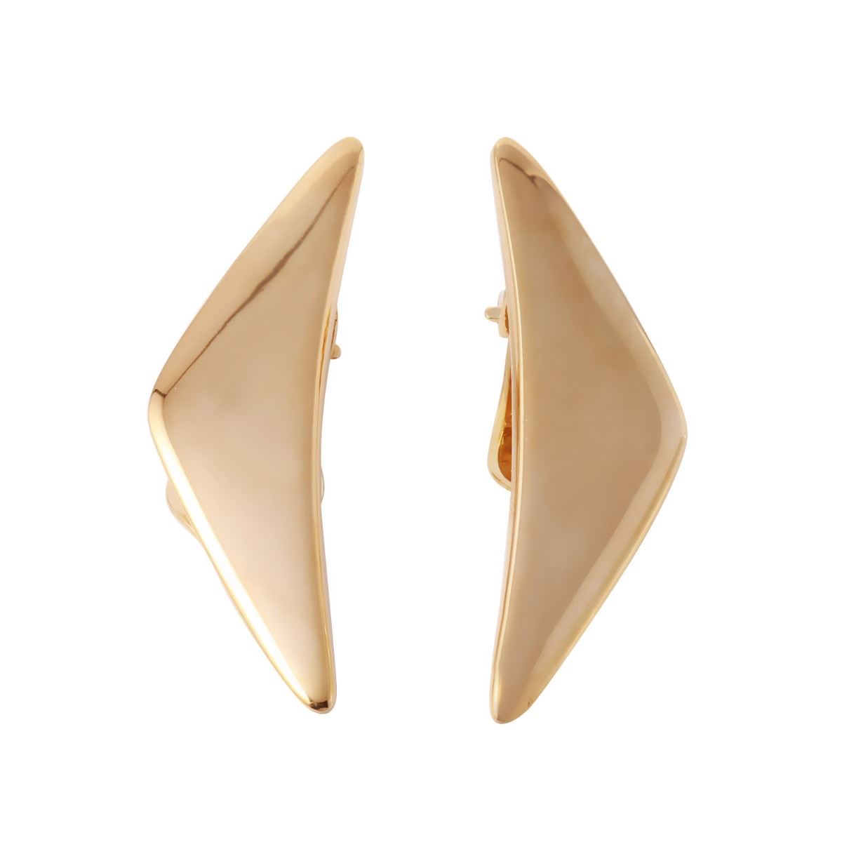 Hans Hansen 14 Karat Yellow gold clip-on Boomerang earrings. Size: about 1 3/8 " by 3/8 ". 7.9 grams. Condition: fine vintage, Mid century Modern, preowned