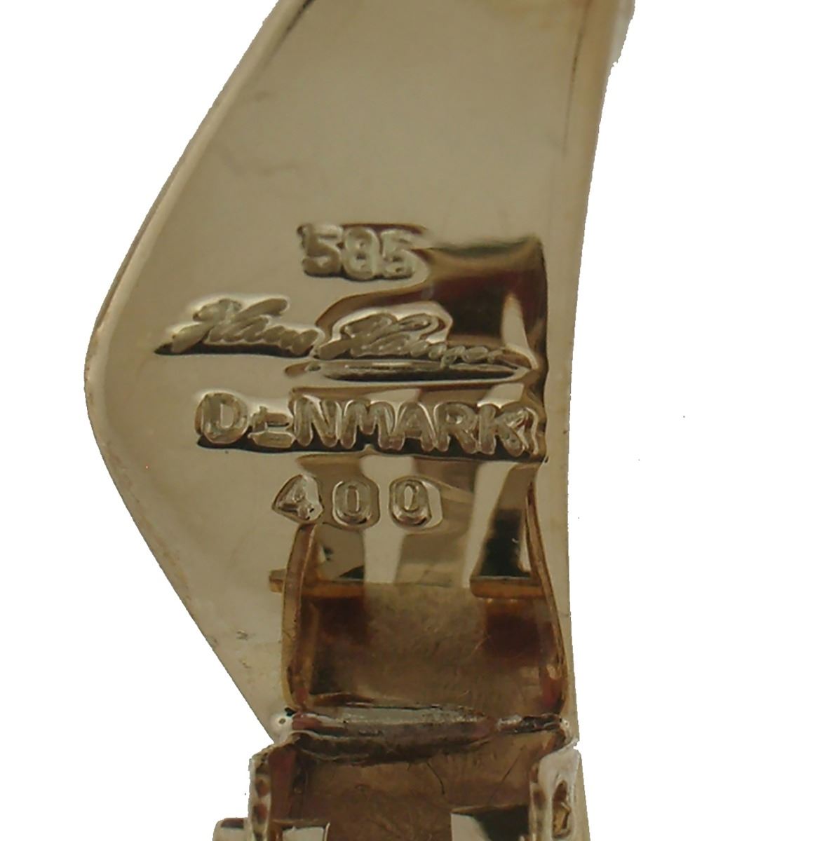 Professionally re-polished to “like new” condition. Hans Hansen (1884-1940) opened his own gold and silver smithy in 1906. Initially producing only flatware, by the 1920s his company successfully began designing and producing jewelry. In 1992 the firm began to collaborate with the Georg Jensen Company. The Hansen Silversmith became a family business once son, Karl Gustav Hansen, began designing and producing silver pieces of his own. Hans died at only 56 years old, leaving the business to 25-year-old son. The company gained wide acclaim for collection known as "Future,” which was comprised of approximately 50 pieces, including brooches, rings, clasps, and earrings. Other designers such as Bent Gabrielsen and Bent Knudsen also worked for Hansen and by the 1980s Allan Scharff was the leading designer. The descriptions listed should not be construed as an appraisal. The detail is provided as a guideline for color, clarity, weights and measurements to the best of our ability. We welcome inspections. WE SHIP WORLDWIDE!