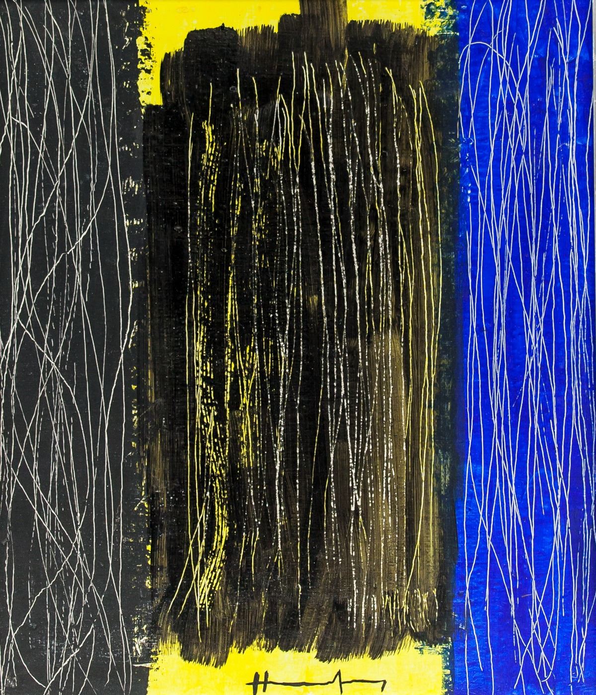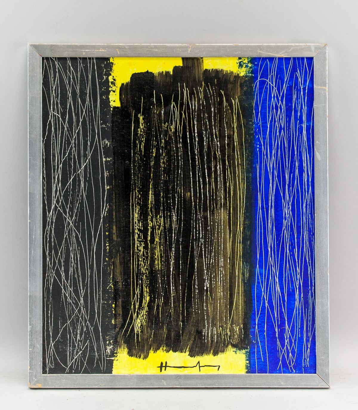 Oil on canvas. Featuring lyrical abstractionist composition. Signed Hans Hartung on the lower edge. Attributed to Hans Hartung (1904-1989, French-German). 43 x 37 cm (17.0 x 14.6 inches). Provenance: This lot carries limited provenance from a Southern Ontario estate