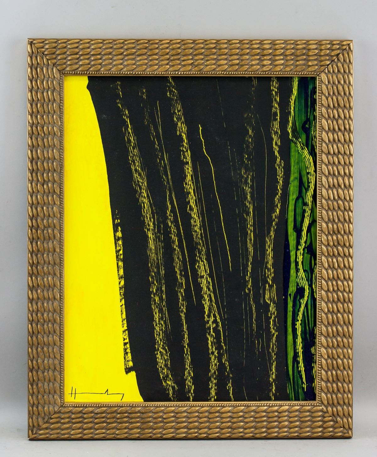 Oil on canvas, framed. Featuring an abstract expressionist composition. Signed Hartung on the lower left corner. Attributed to Hans Hartung (1904-1989, French-German). 45 x 35.5 cm (17.75 x 14 inches). Framed size: 54.5 x 44.5 cm (21.5 x 17.5 inches). PROVENANCE: Southern Ontario estate