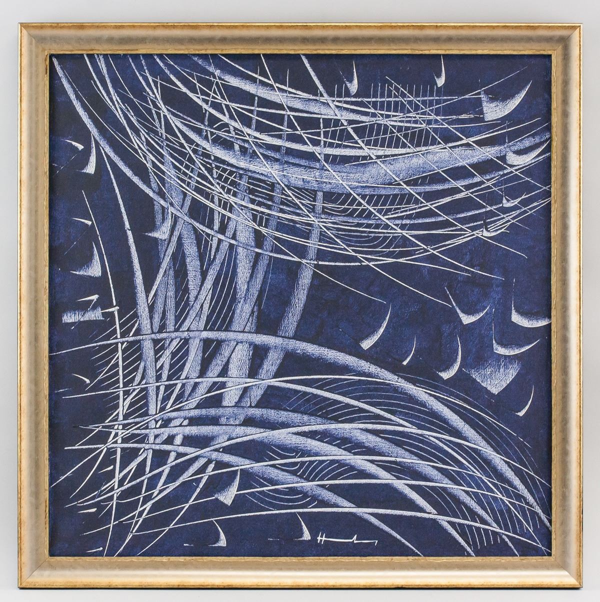 Oil on canvas, framed. Featuring an abstract expressionist composition. Signed on the lower edge. Attributed to Hans Hartung (1904-1989, German-French). 60 x 60 cm (23.5 x 23.5 inches). Framed size: 66 x 66 cm (26 x 26 inches). Provenance: This lot carries limited provenance from an Eastern European estate