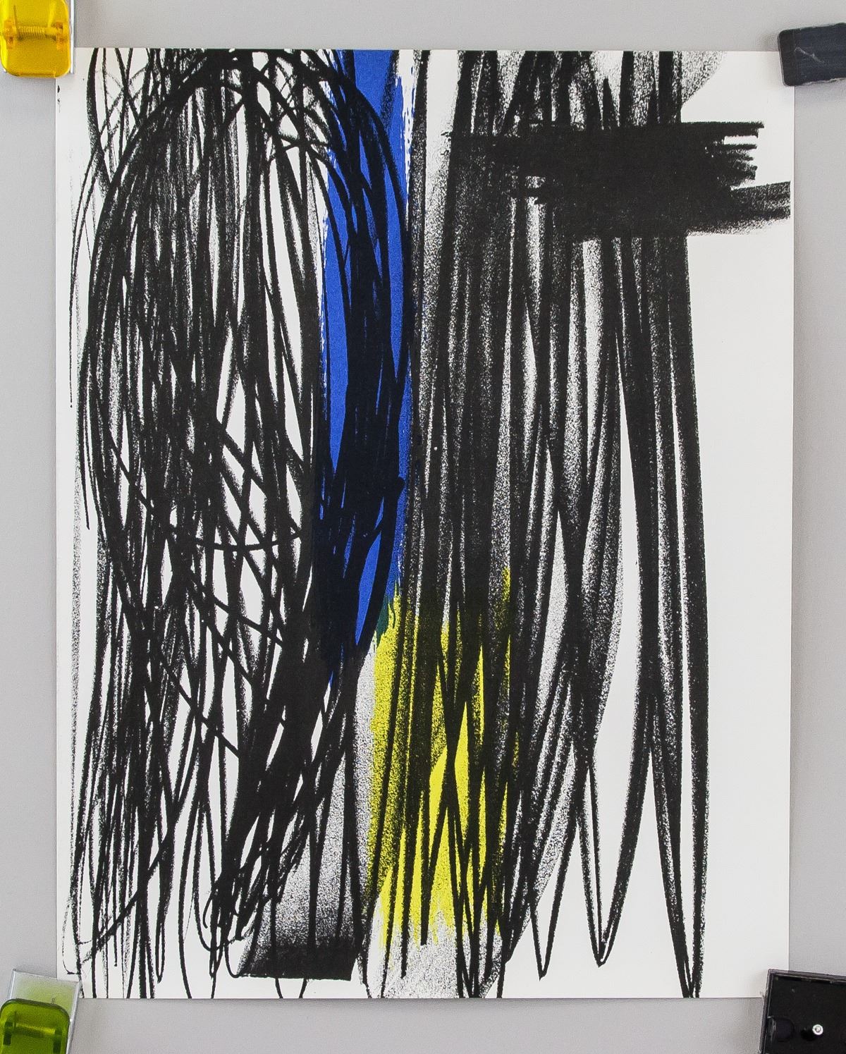 Lithograph on paper. Featuring abstract expressionist composition. Attributed to Hans Hartung (1904-1989, French-German). 33 x 25.5 cm (13.0 x 10.0 inches). PROVENANCE: Private American collection