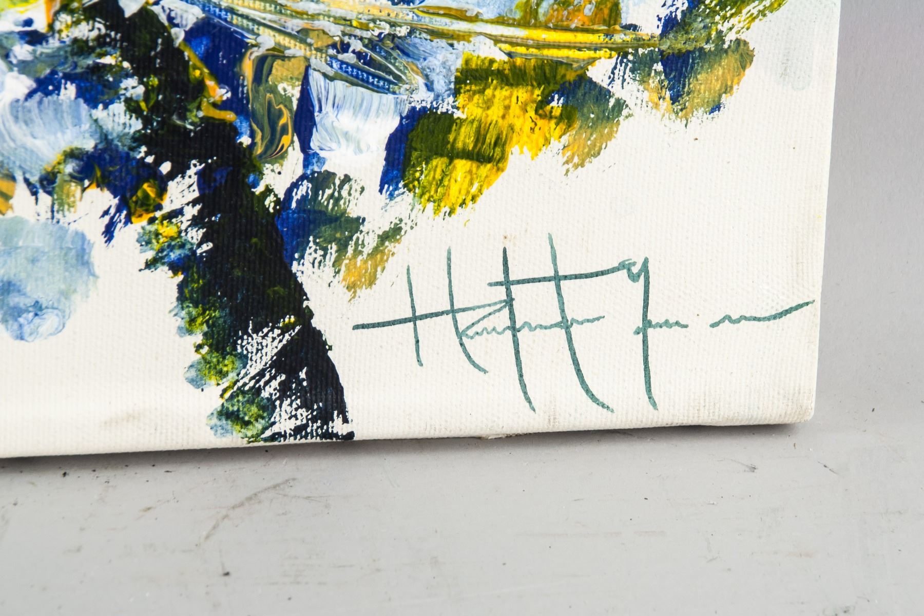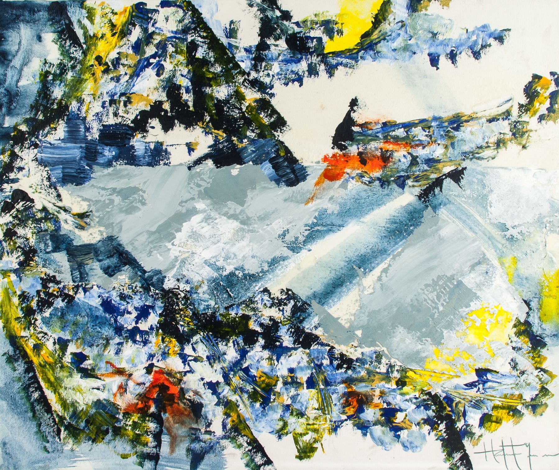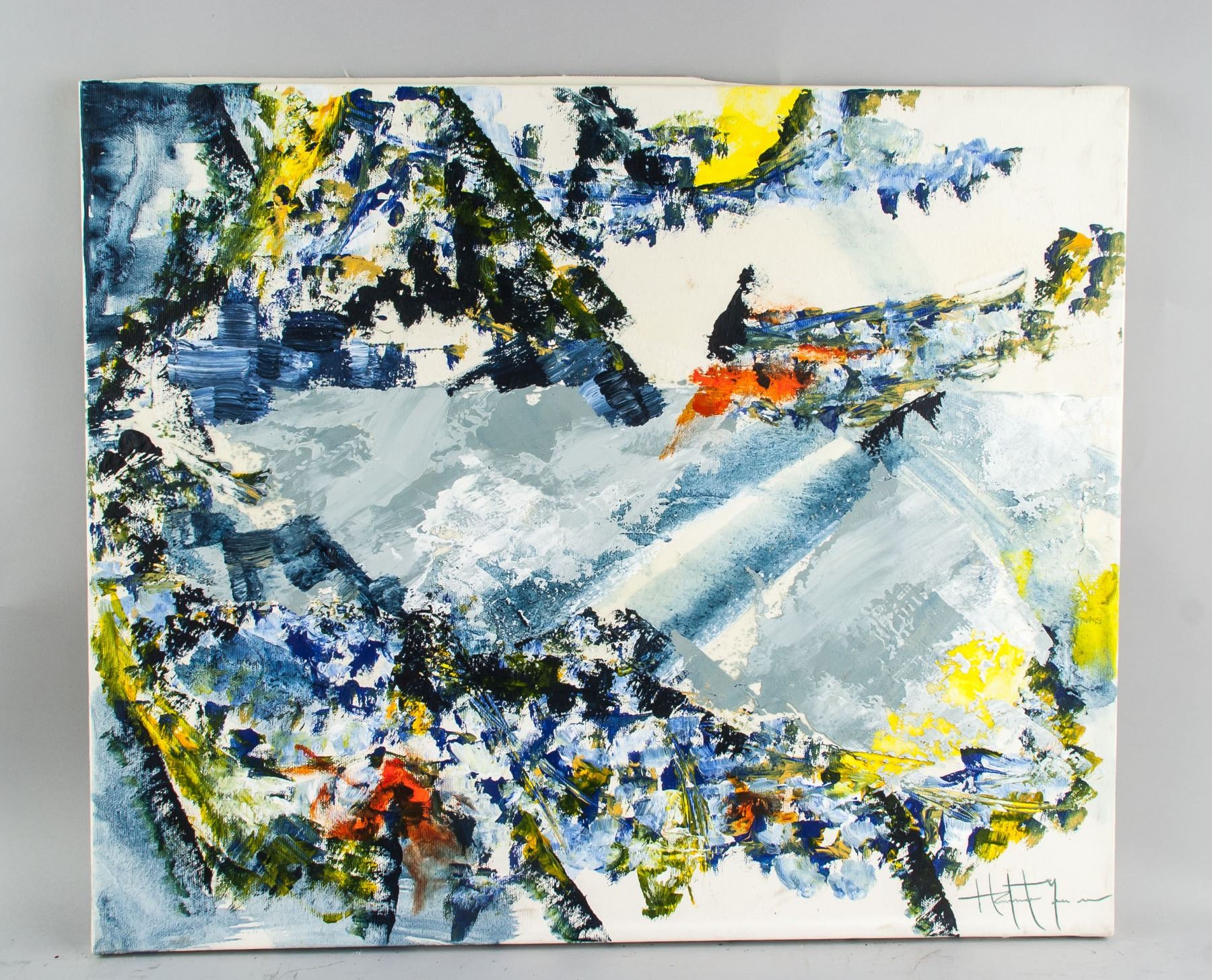 Acrylic and mix media on canvas abstract painting. Signed and attr. Hans Hofmann (German-American, 1880-1966) on bottom right corner. 19.5 x 32.5 inch (49.53 x 82.55 cm). Hans Hofmann began painting in Paris, where he worked alongside such titans of European Modernism as Pablo Picasso, Georges Braque, Fernand Léger, and Henri Matisse. His best-known early paintings combine Cubist structure with Fauvist color, as in Untitled (1943). Although he would eventually be considered one of the preeminent Abstract Expressionists, having relocated to New York in 1932, Hofmann’s primary interest was in pictorial phenomena: the illusion of three-dimensional space, composition, and the optical effects of color. “It is not the form that dictates color, but the color that brings out the form,” he once said. In the 1950s, Hofmann made his most famous series of paintings, in which he explored the relativity of color, developing his “push-pull” theory and technique by which warm and cool colors interact to produce effects of movement, space, and depth. Perhaps even more influential as a teacher than as an artist, Hofmann counted Helen Frankenthaler, Alfred Jensen, Joan Mitchell, Wolf Kahn, Lee Krasner, Louise Nevelson, and Frank Stella among his many students. PROVENANCE: Private collection, Europe